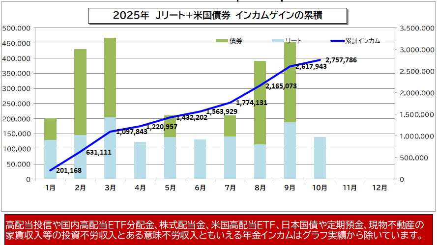 2025年10月のリート・債券投資のインカムゲインまとめ
