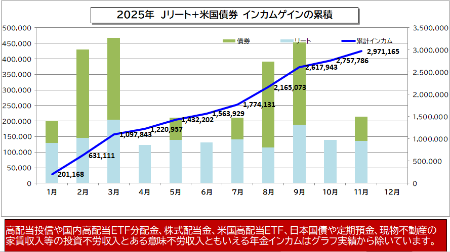 2025年、リート・債券の累積インカム1月~11月